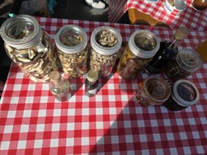 Det var smaksprøver av sopp-flarn, sopp-chutney, kandisert kantarell og stekt sopp. I Ørsta var det eget «barnehjørne» med soppbingo, og i Ålesund besto utstillingen blant annet av «dødens akvarium». I Langevåg kom flere publikum med egne smaksprøver, så her gikk læringen begge veier!